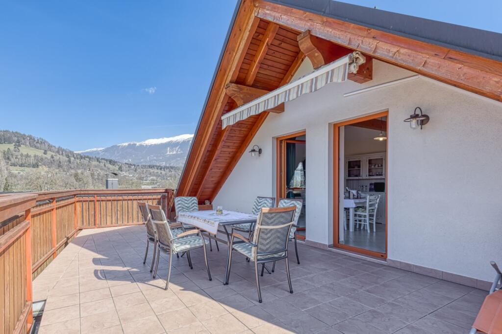 Terrasse mit Aussicht auf die Karawanken und die Julischen Alpen
